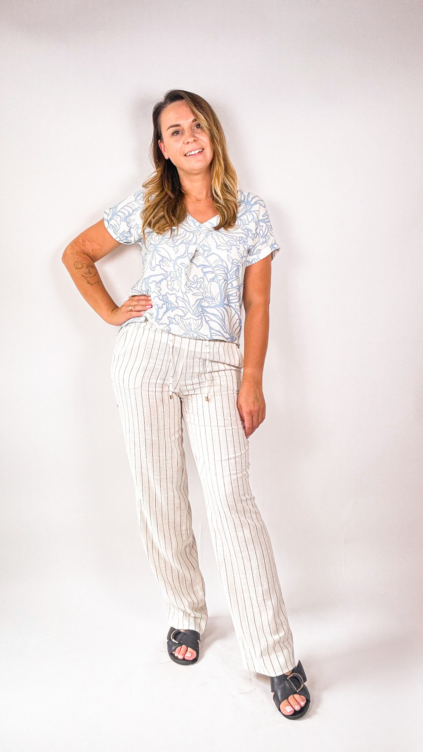 Długie spodnie w paski na gumce z szerokimi nogawkami to propozycja od POLSKIEGO PRODUCENTA idealna dla Pań ceniących sobie jakość, komfort oraz styl. Dostępne w dwóch wersjach kolorystycznych: kremowym oraz beżowym.