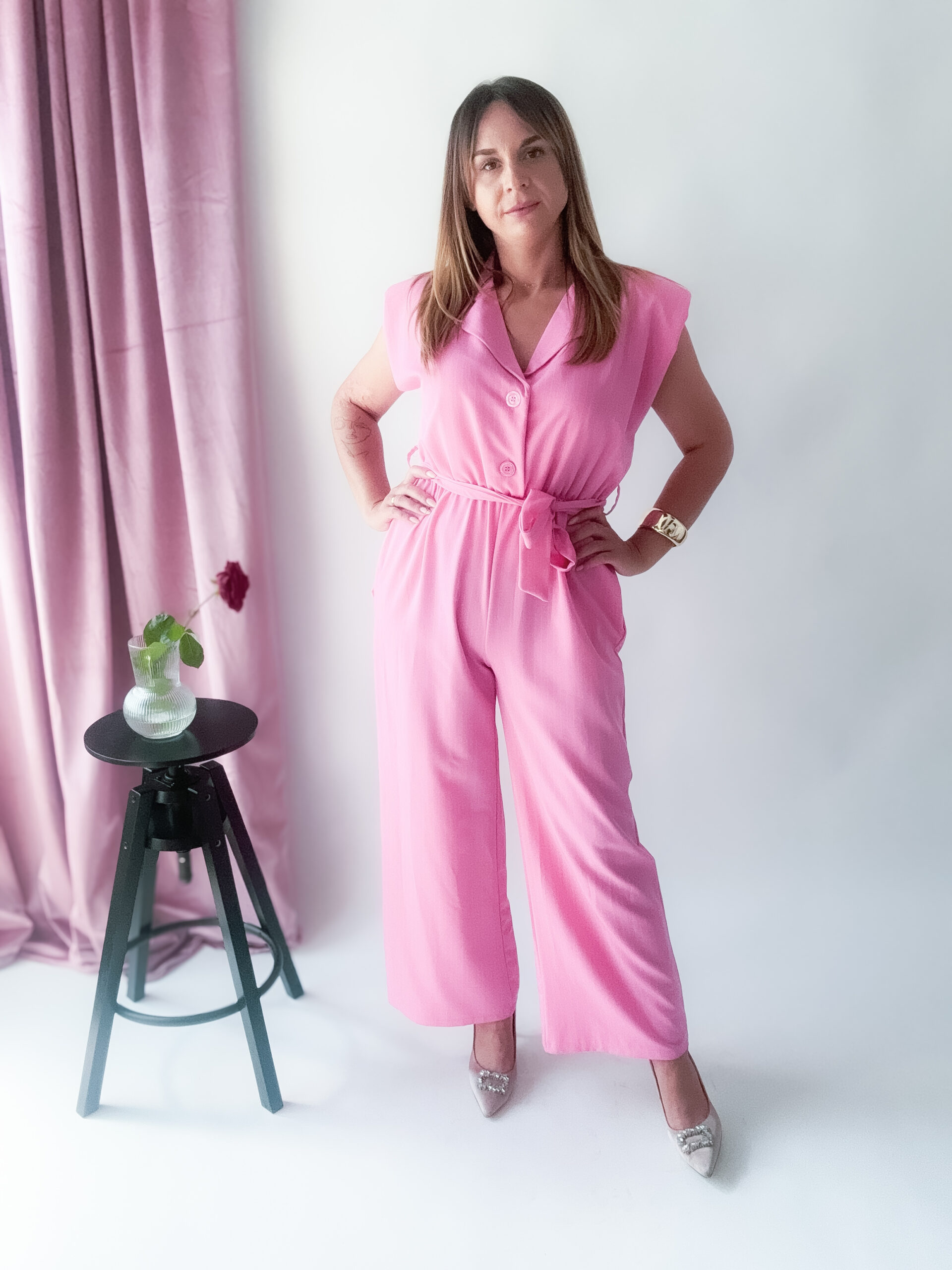 RÓŻOWY KOMBINEZON Z PASKIEM