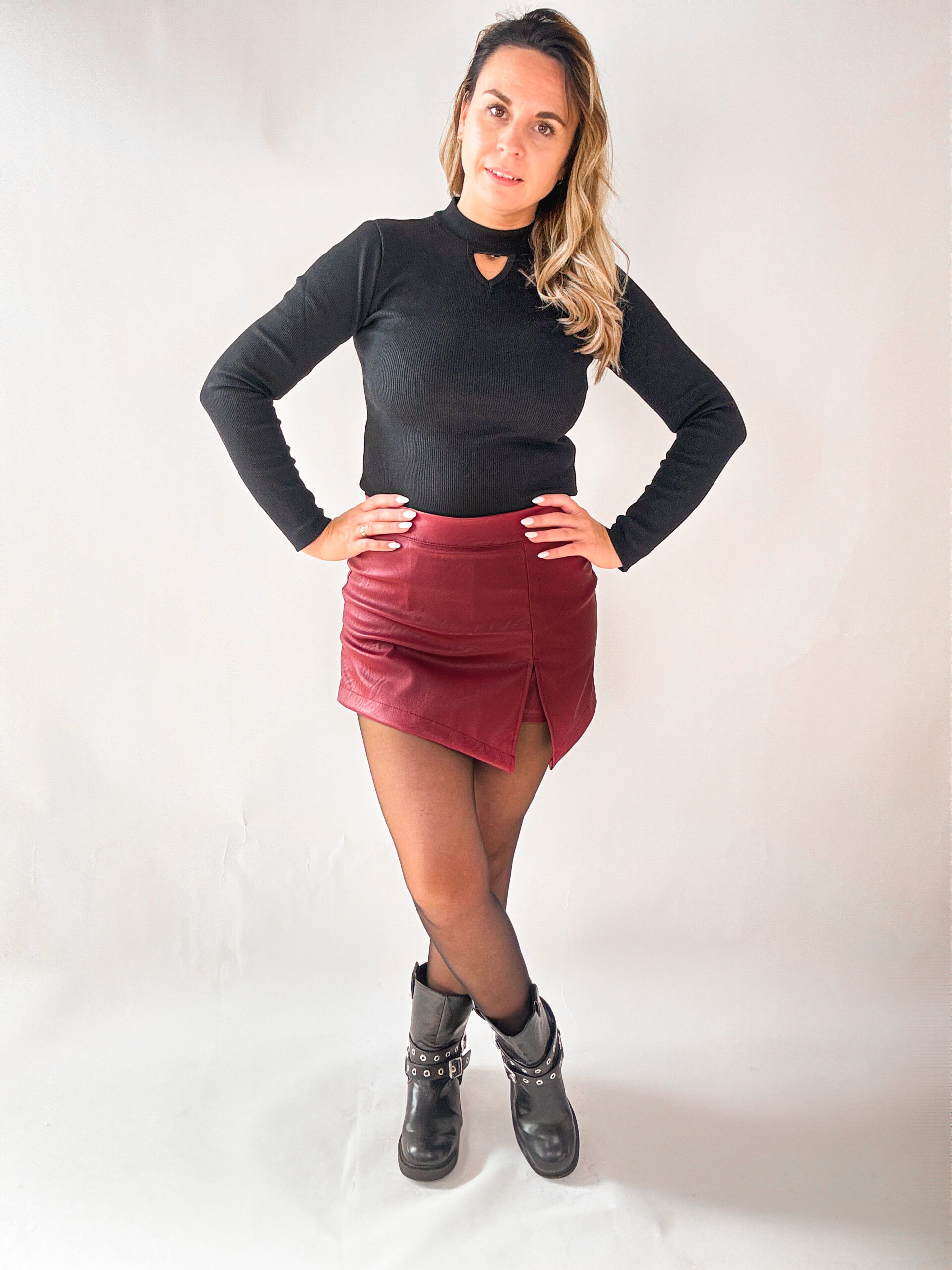 Skórzane spódnico spodnie wykonane z ekoskóry to wyjątkowe połączenie wygody i stylu. Dzięki małemu rozporkowi z boku ruchy nie są skrępowane a stylizacja zyskuje na zmysłowości. Idealne zarówno na co dzień ja i na efektowne wyjścia.