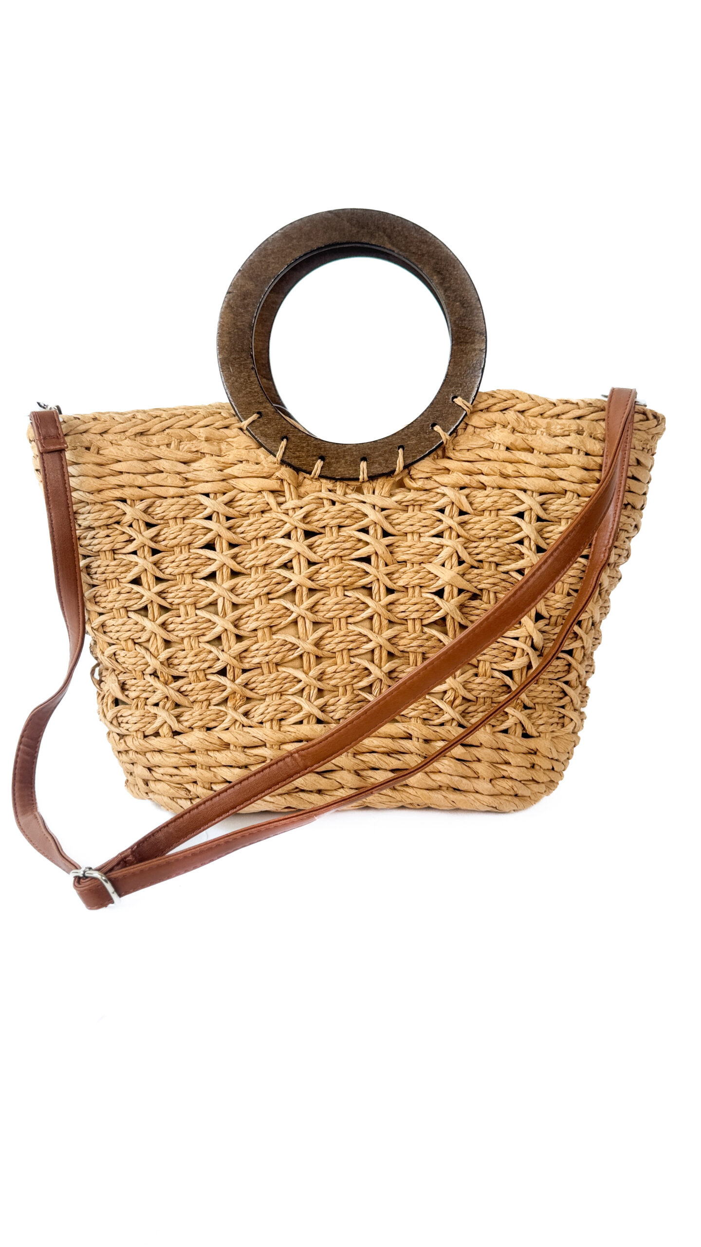 Duża, sznurkowa, miękka torebka typu worek z jedna duża przegrodą zapinaną na jeden magnetyczny zatrzask.