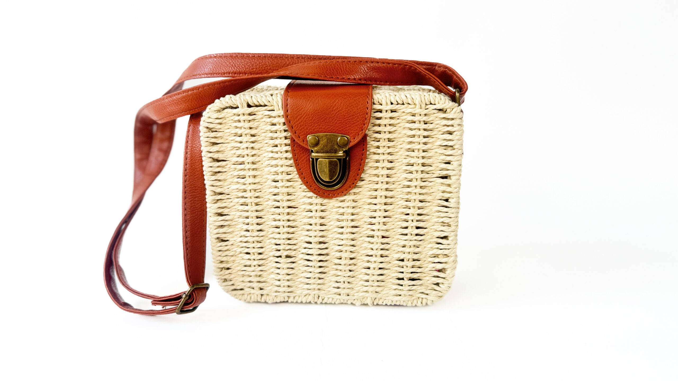 Torebka prostokątny, wiklinowy koszyk